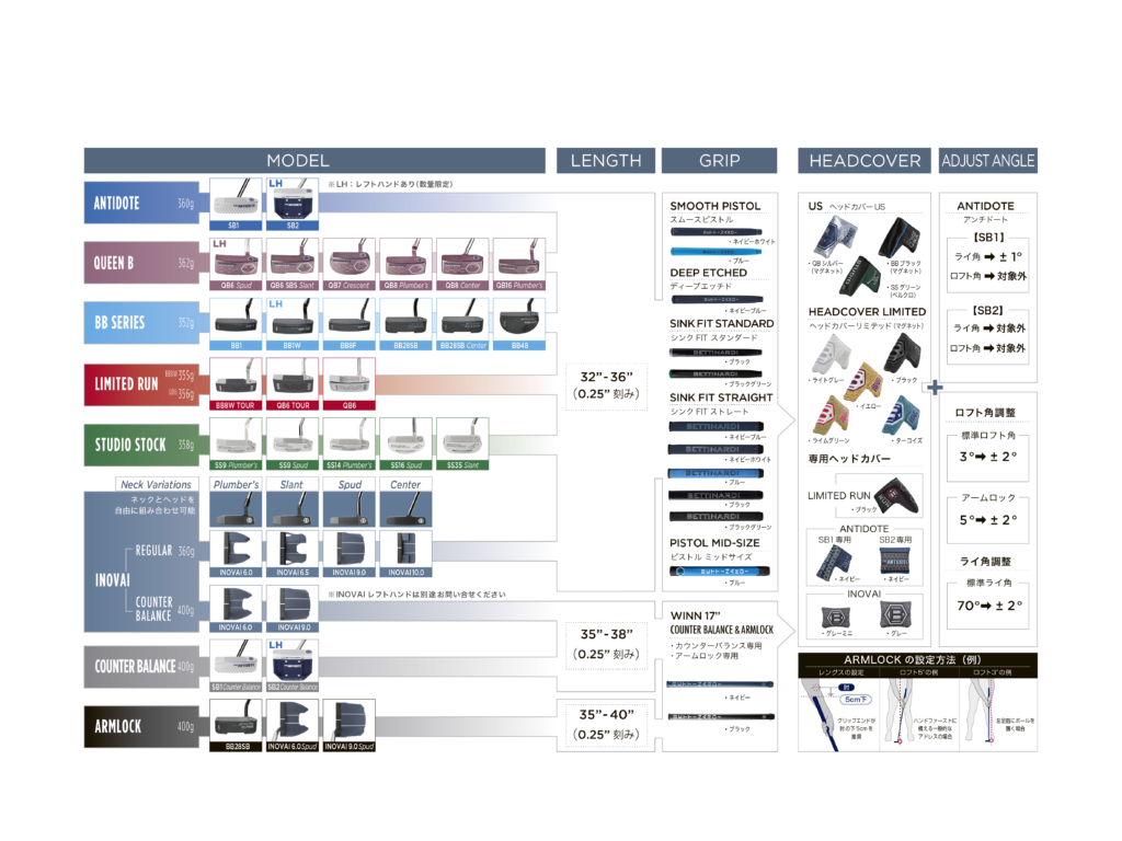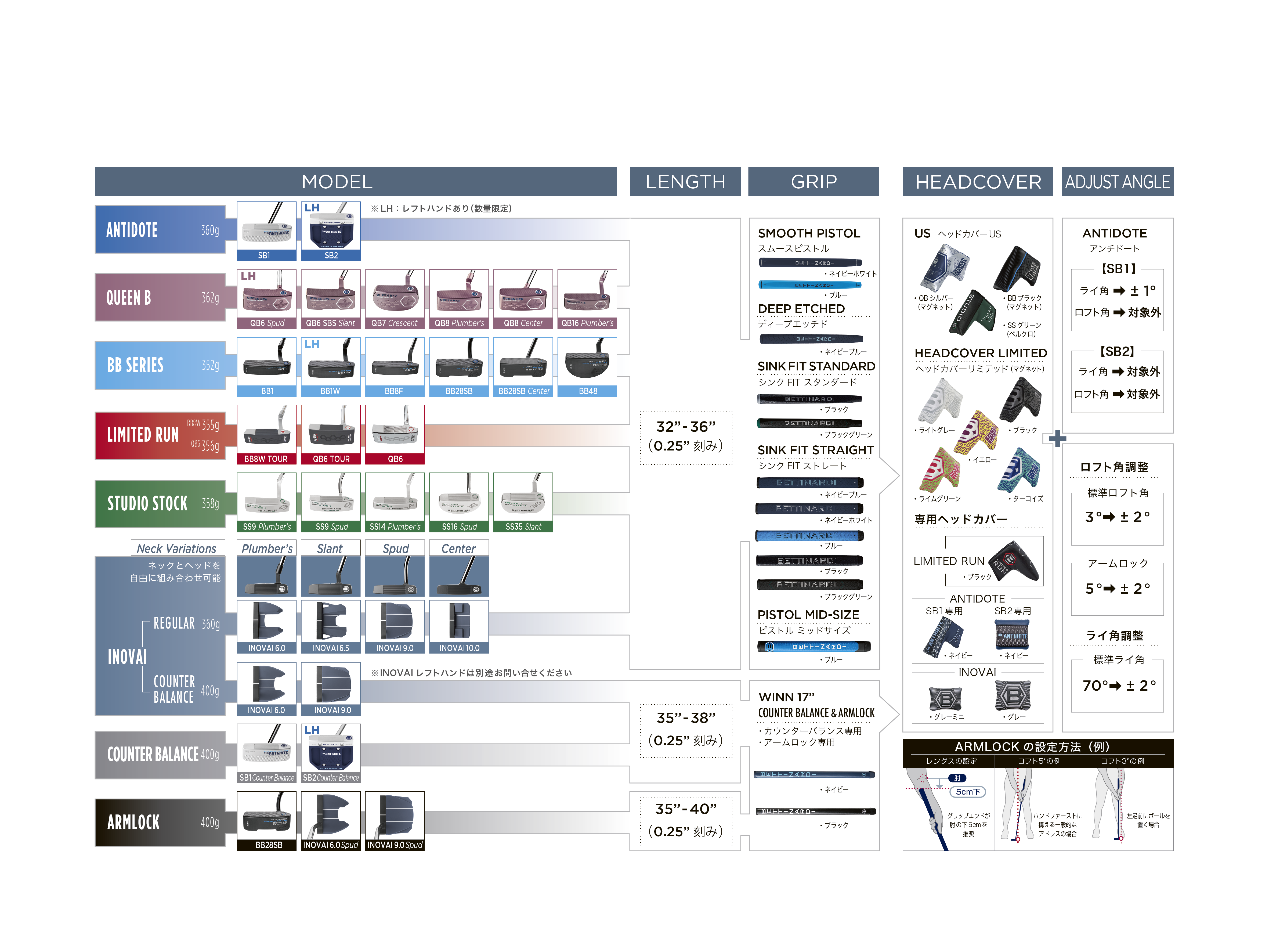 - 追加料金:なし(SSシリーズパターの注文でマグネット式ヘッドカバーを選ぶ場合は差額を申し受けます)
