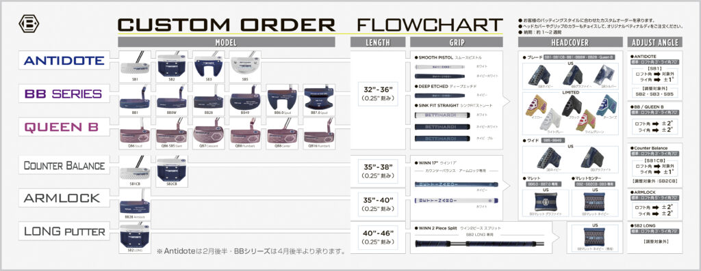 • 追加料金:なし(SSシリーズパターの注文でマグネット式ヘッドカバーを選ぶ場合は差額を申し受けます)